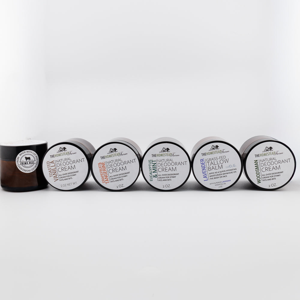 STINKY PITS is our most effective deodorant cream. Organic coconut oil & shea butter are naturally antibacterial helping fight off those stinky odors while organic arrowroot starch and sodium bicarbonate help wick away extra moisture. ALL NEW! Now contains grass-fed beef tallow and magnesium hydroxide to moisturize skin and have more fighting power against odors!